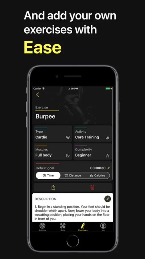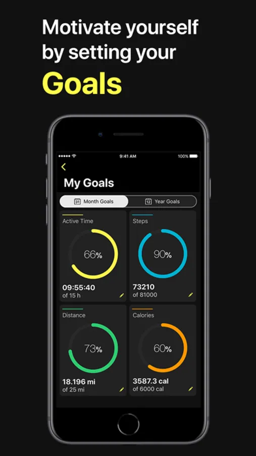 Create your own Fitness Sets with an infinite variations of exercises. Choose between the time, distance or calories goals you want to achieve during each exercise. Also, there is an option of setting Time Limit and Rest Time.