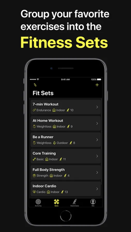 2. Once the list of exercises is ready, plan your workouts by grouping your exercises into Fitness Sets.