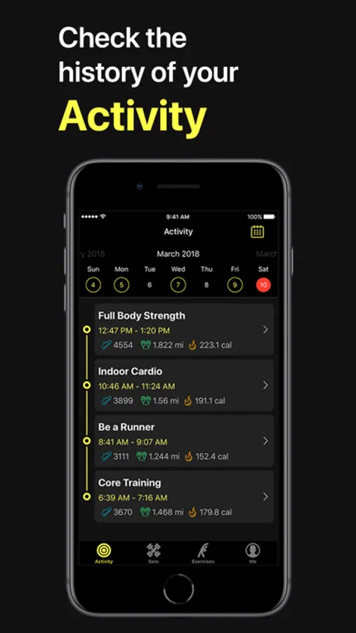 Contribute all workout results into the Health app and activity rings on your Apple Watch.