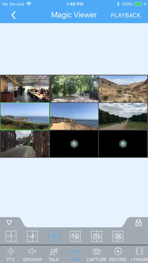 - Live Channels – 1 / 4 / 9 / 16 / 25 / 36 display mode