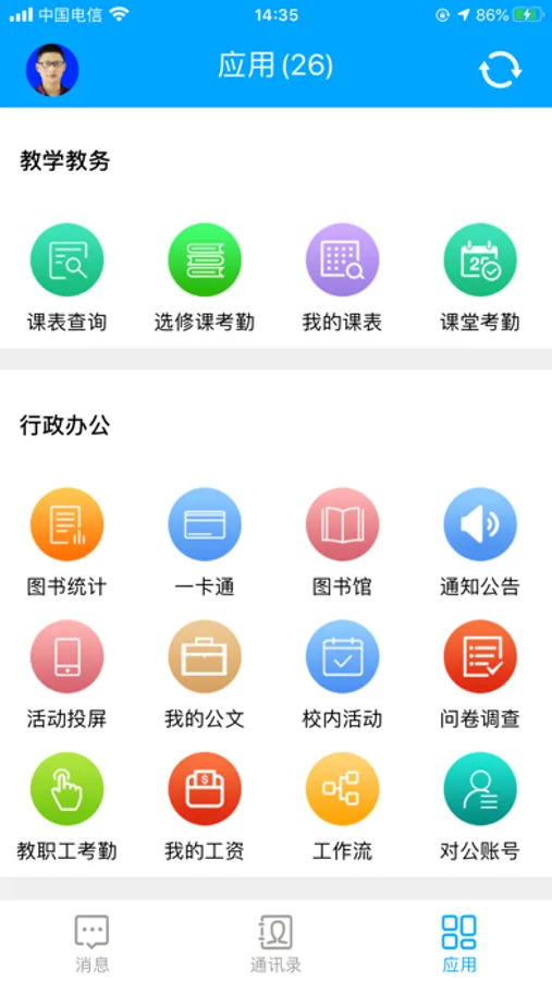 未来校园移动端实现校园移动办公需求,可以查看学校通讯录、公文、通知公告、教职工工资、课表、考勤、校内活动、课堂考勤、学生信息查询、一卡通、学生操行、节假日留校等学校移动应用。