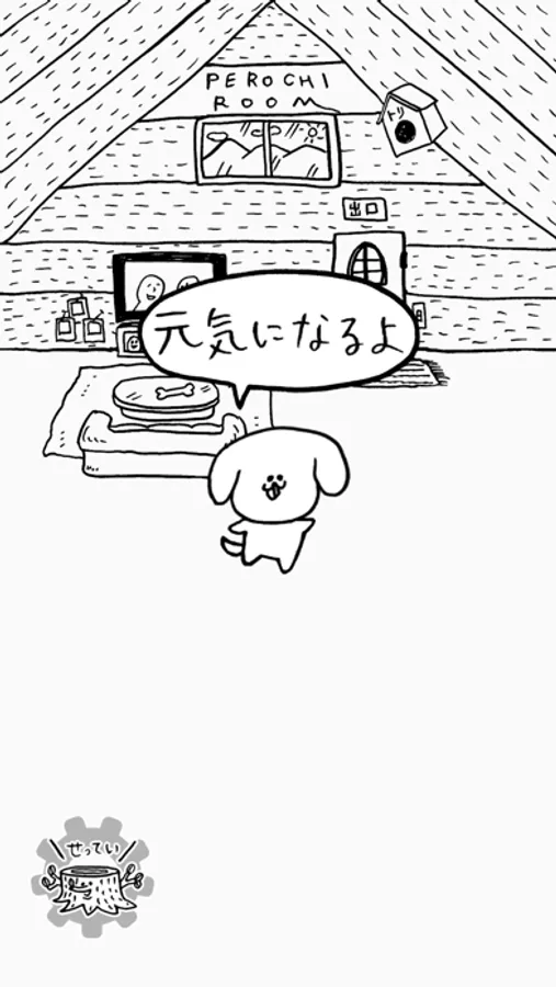 画面の端から覗いているぺろちにタッチすると、中央にやってきて挨拶をします。