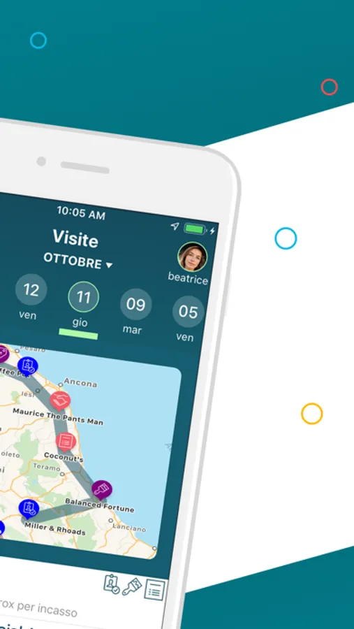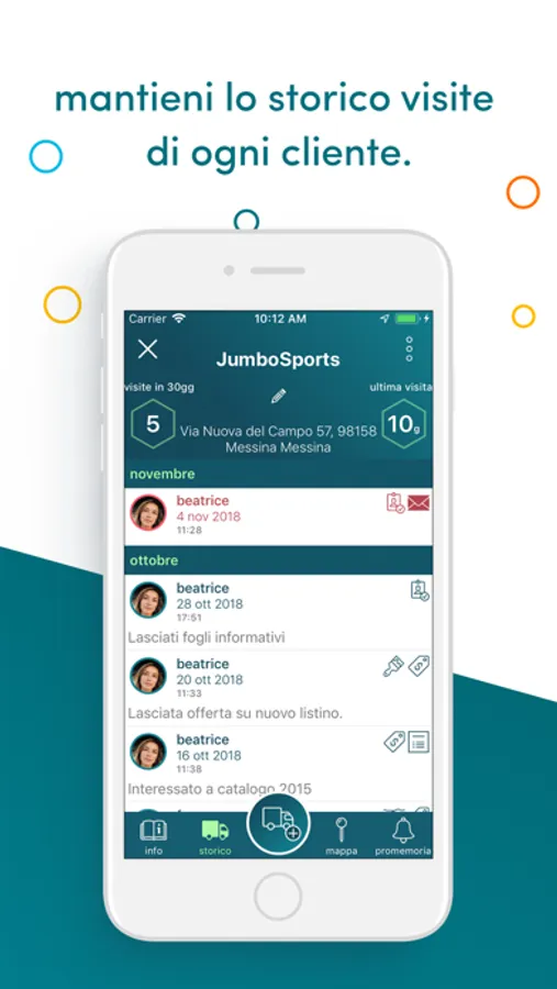 • avere sempre in tasca la tua lista clienti, visualizzandola sulla mappa, filtrandola per nome, indirizzo tipologia o disegnando sulla mappa la zona di tuo interesse.