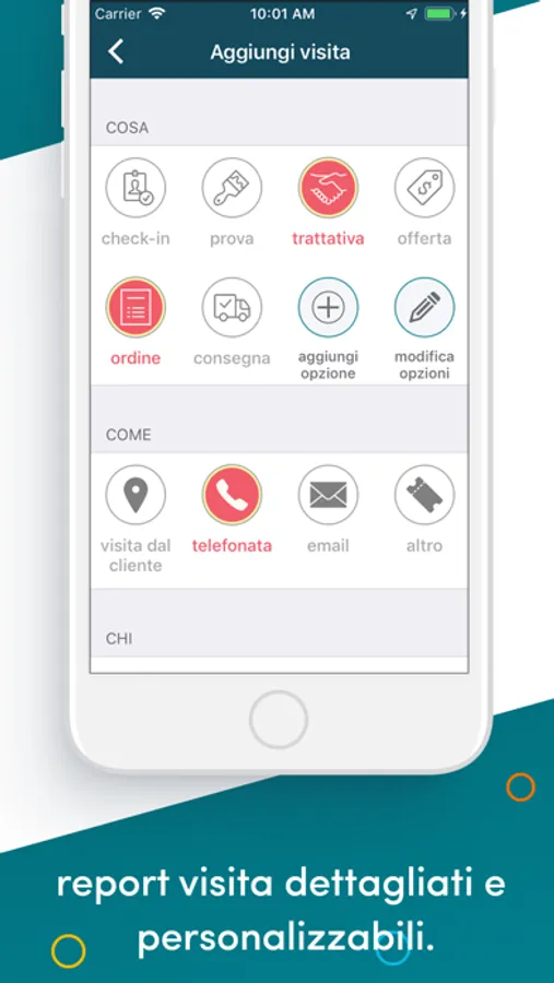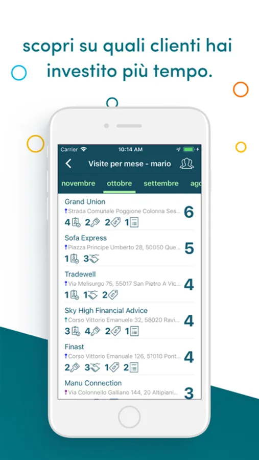 • inserire i tuoi giri visite giornalieri e confrontarli con quelli di ogni altro agente.