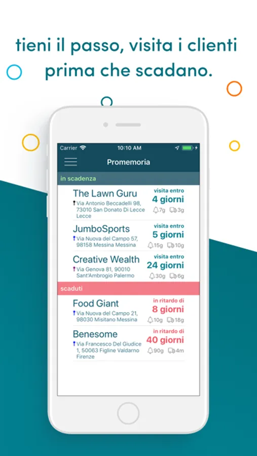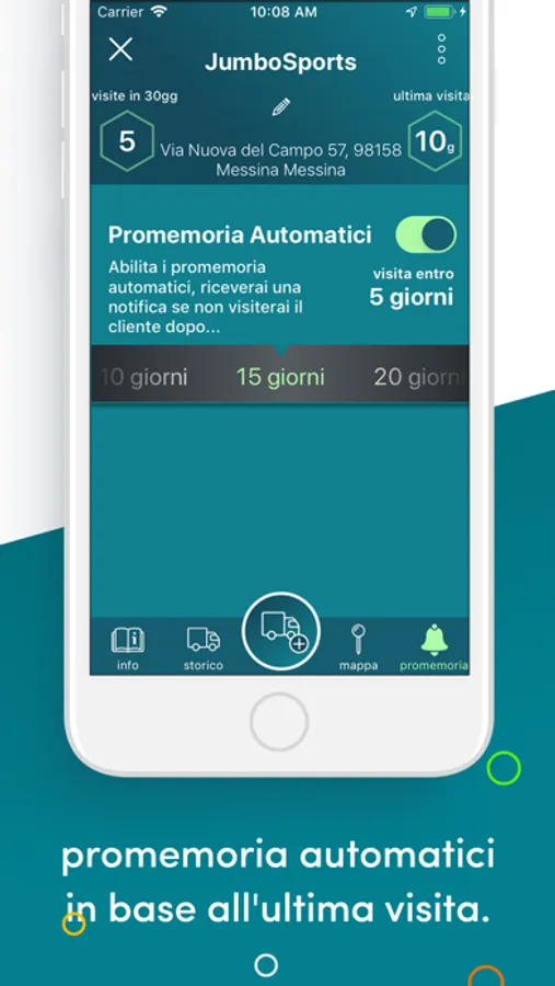 • impostare promemoria automatici in base all'ultima visita effettuata. Vuoi passare da un cliente almeno ogni 30 giorni? Gentmo ti avvisa solo se non mantieni il passo!