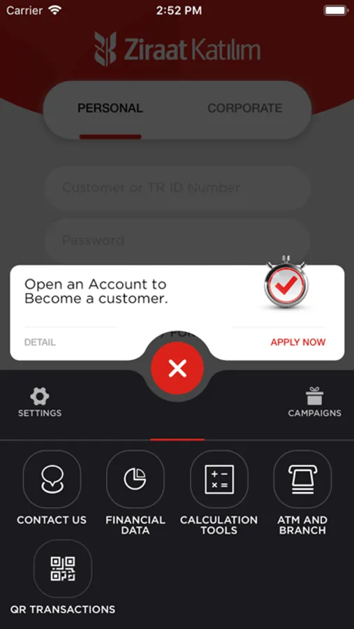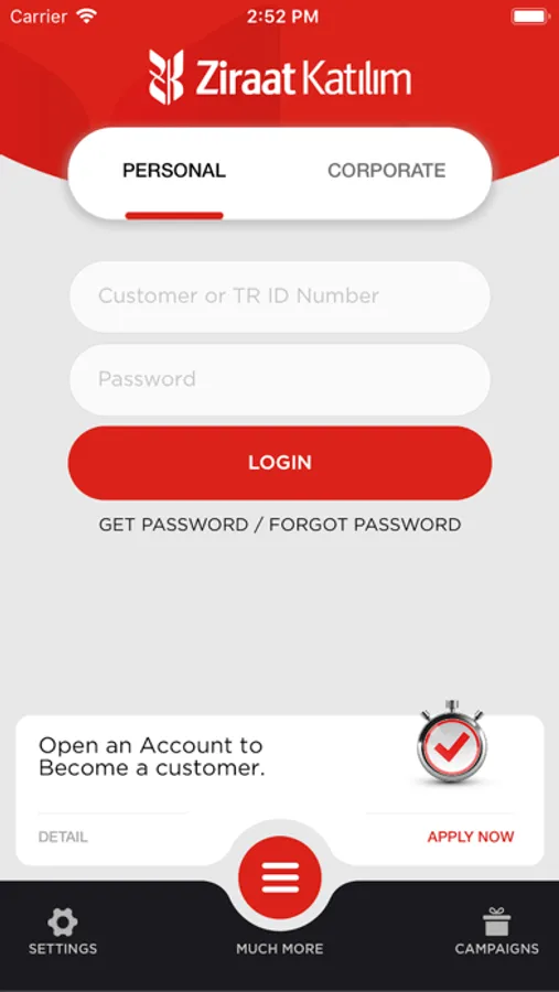 You may download the Katılım Mobil to your mobile phone free of charge and perform your transactions with your Ziraat Katılım customer number or TR ID number with your Internet Banking password.