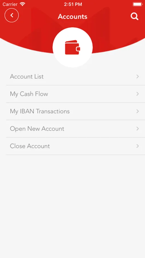 You may view your accounts over the main menu and manage your accounts by passing easily from one menu to another with a single finger after login.