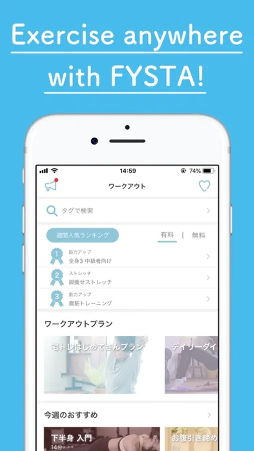 Fysta has prepared a video player that makes full use of smartphone screens. Easily access workout menus supervised by professional trainers. The app has you covered with an abundant amount of free programs according to your goal; whether that may be weight loss, shape up, muscle training, yoga, and more!