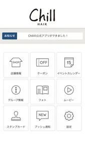 "大田区大岡山で有名なヘアサロンChill【チル】の公式Appアプリです。