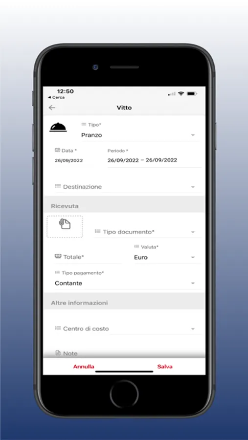 L'app ti permette di caricare le singole nota spesa e gli eventi/costi della tua auto aziendale, allegando le foto delle ricevute comodamente dal tuo smartphone.