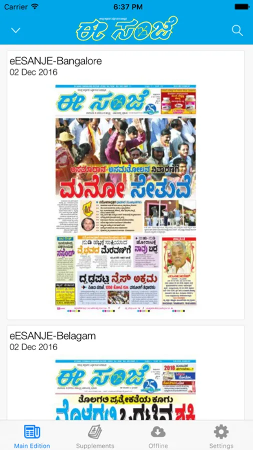 It is a kannada daily newspaper from Bangalore. It is the one of the largest selling kannada daily in bangalore - See more at: http://www.eesanje.com
