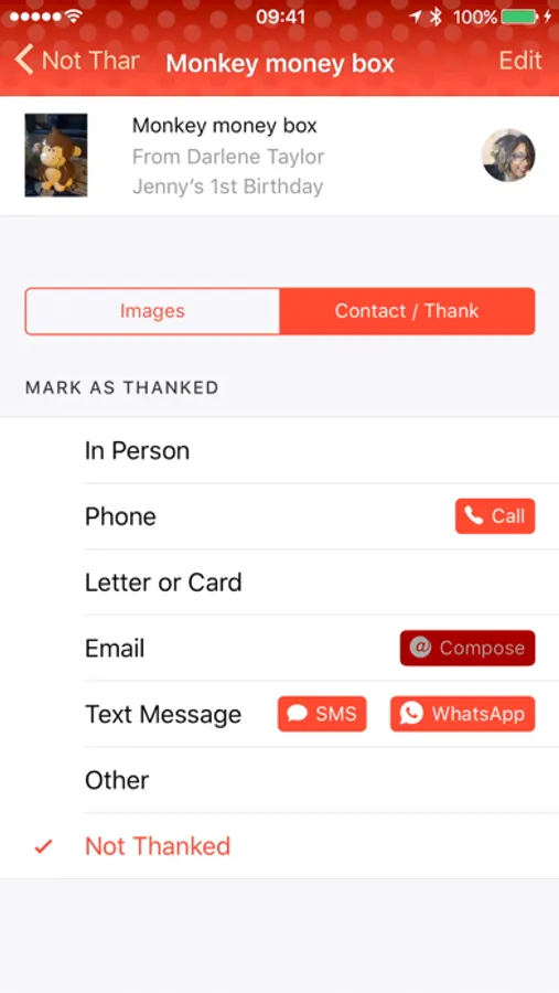 - Number of unthanked gifts appears as a ‘badge’ on the app icon, so you can check it without opening the app