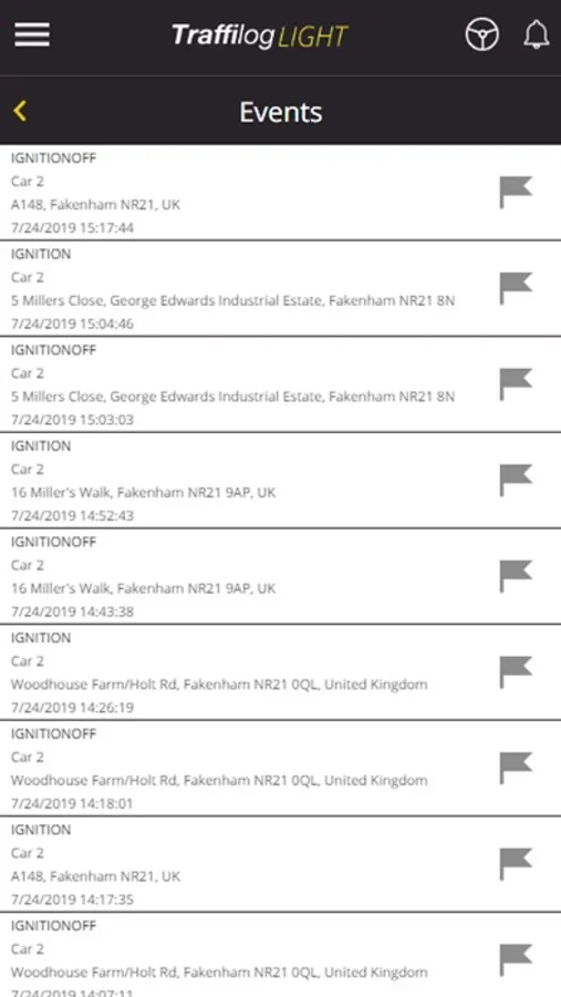 Traffilog Light Application lets you receive information regarding the vehicle you are driving and your driving habits.