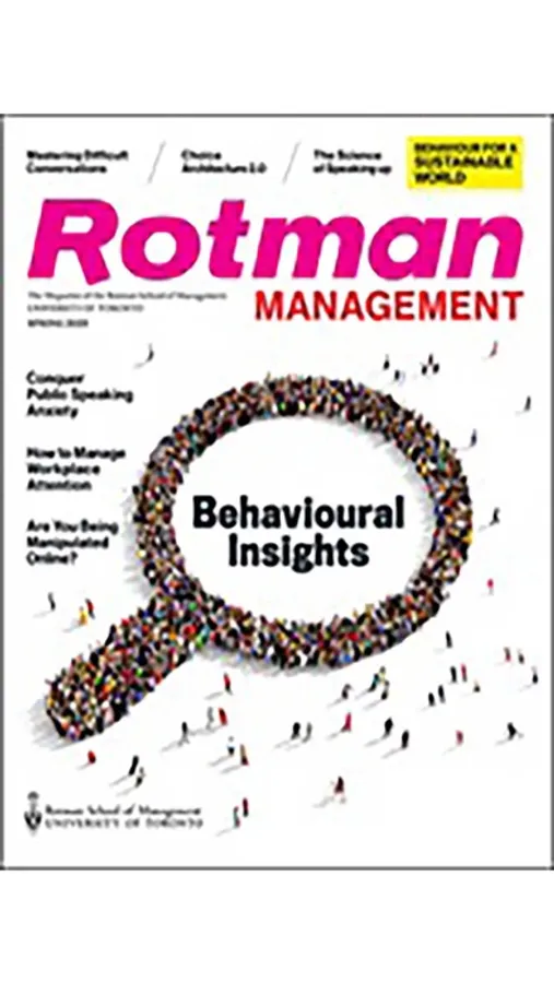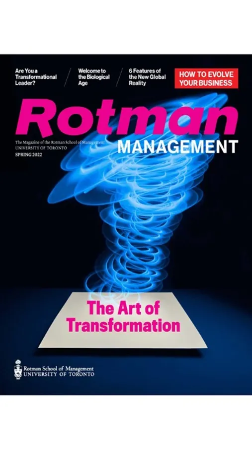 Published in January, May and September by the Rotman School of Management at the University of Toronto, Rotman Management explores themes of interest to leaders, innovators and entrepreneurs. Each issue features thought-provoking insights and problem-solving tools from leading global researchers and management practitioners. The magazine reflects Rotman’s role as a catalyst for transformative thinking that creates value for business and society.