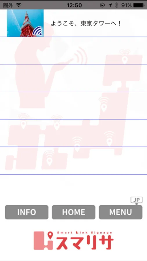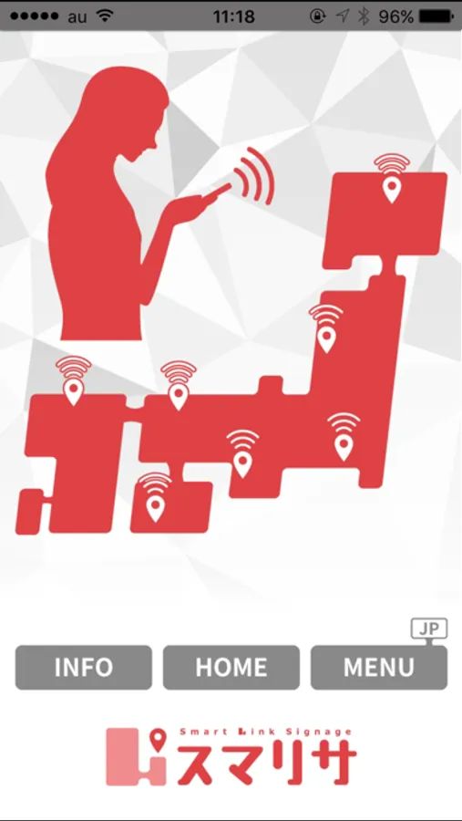 スマリサを利用できる施設には発信機を設置しています。Bluetooth機能を動作させることによって、各発信機からの電波を受信すると、施設ごとに設定された情報がスマートフォンに表示されます。