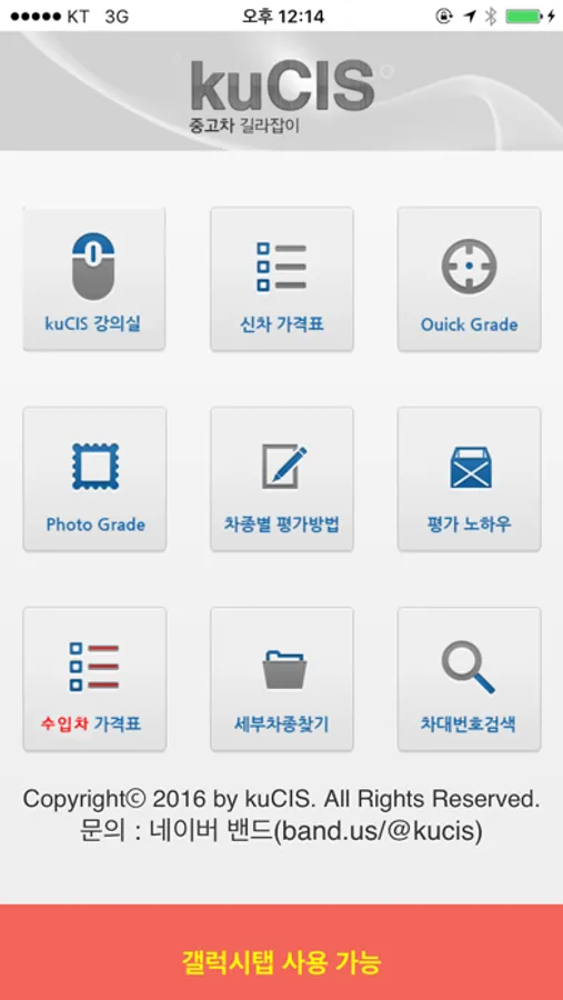 중고차강의실, 신차 가격표, QuickGrade, PhotoGrade, 차종별 평가방법, 평가 노하우, 세부차종 찾기, 차대번호 검색등의 메뉴가 있습니다.
