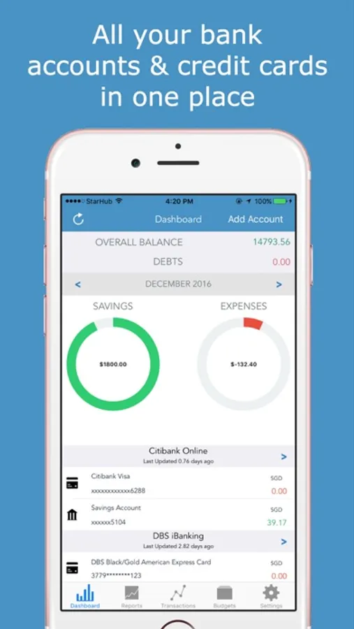 • Connect all your bank accounts & credit cards via iBanking credentials and 2FA token