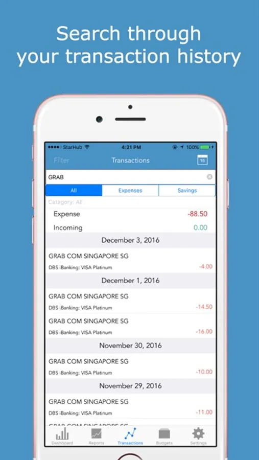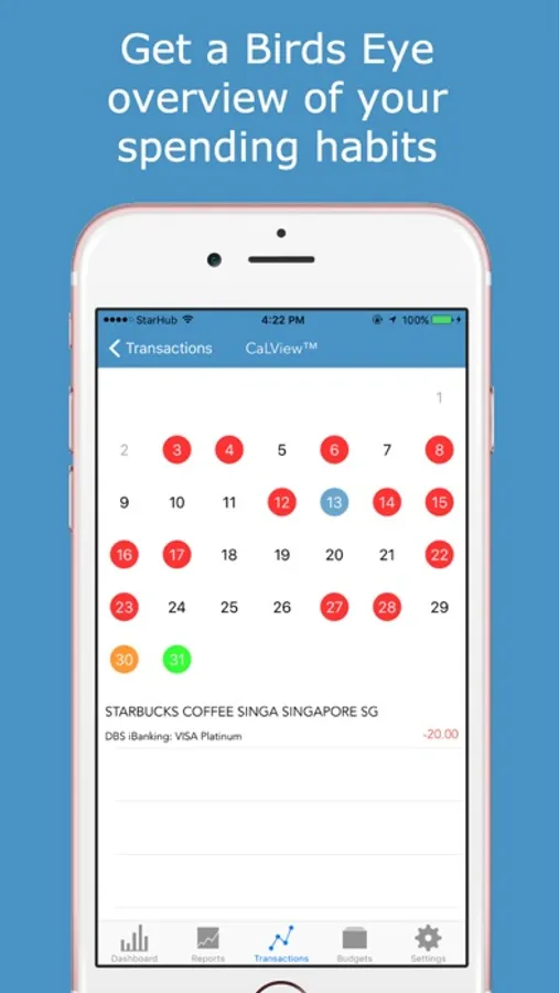 • Get a birds eye view of your transaction history