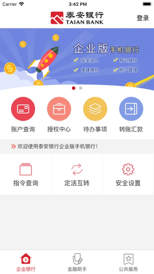 泰安银行企业版手机银行是基于泰安银行网上银行的相关功能,遵循企业网银相关业务规则、业务流程、审批机制而开发的新一代手机银行产品。该产品围绕“高效、便捷、智能、安全”四大核心目标,操作简单,界面美观,为企业客户打造全新的移动金融体验。