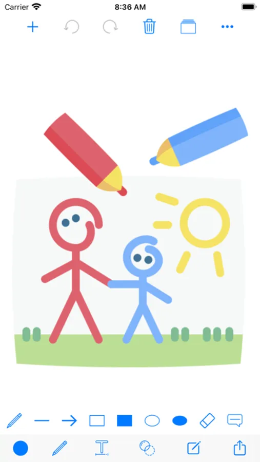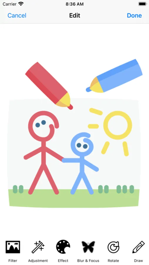 • With it you can draw something what you want on one blank photo/picture/image and make it to one picture, and save it or share with it, also you can enhance your photos, apply effects, add stickers, paint & draw, remove blemishes, whiten smiles and so much more!