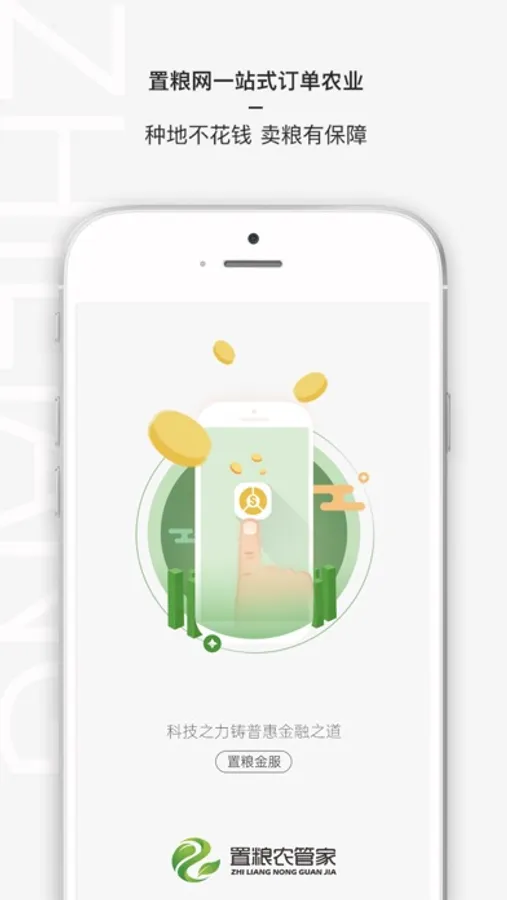 置粮农管家是中农置粮科技股份有限公司为广大农户打造的综合性服务平台,提供智能选种、科学种植、一键卖粮、订单农业、土地流转、置粮贷等功能服务,实现农业产前、产中、产后全过程服务覆盖,引导农户根据市场需求优化种植结构,通过农资集采分销降低种植成本,减少农粮贸易链中间环节,真正实现“让农民种好粮,卖粮无忧”。