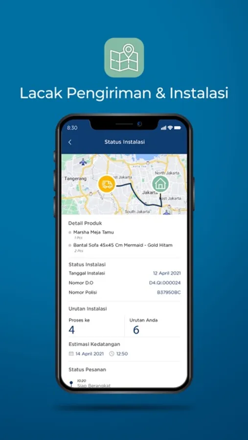 Memberi pantauan terupdate seputar status pengiriman serta pemasangan barang hingga selesai.