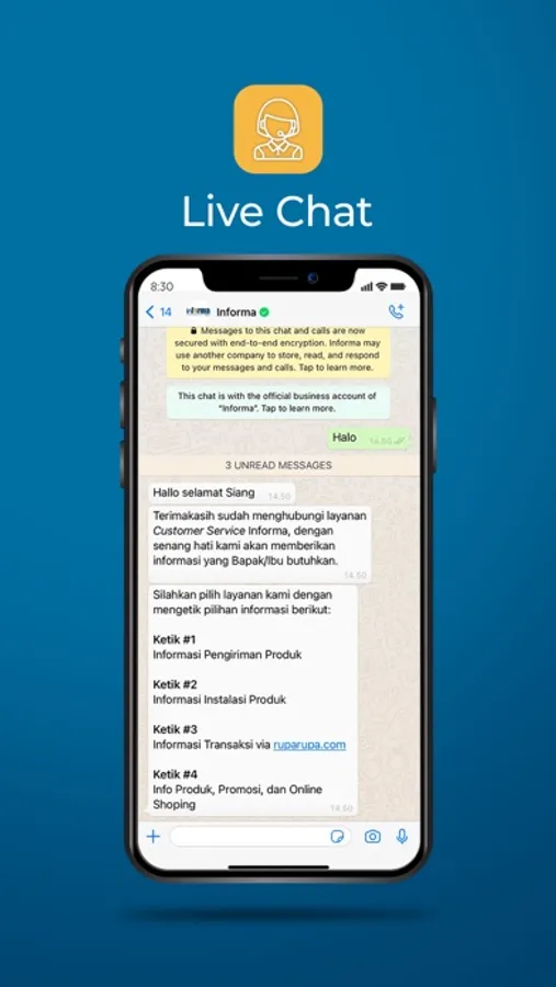 Layanan chat interaktif & informatif dengan operator INFORMA yang siap membantu semua kebutuhan Anda, seputar produk & layanan INFORMA.