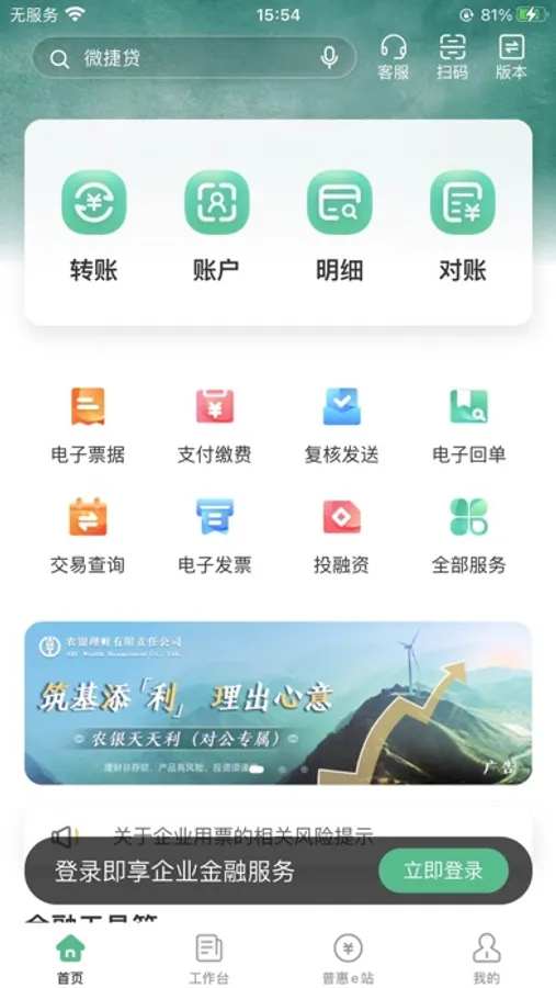 “简相随、智体验”,农行企业掌银—您的贴心移动金融助手。农业银行企业掌银是中国农业银行专为企业客户打造的移动金融服务端,助力企业网银“管家式”、“一站式”和“可配置”的多场景、专业化线上企业金融服务平台。为您提供账户管理、转账支付、融资理财、银企对账、复核发送、交易查询等多种服务功能。