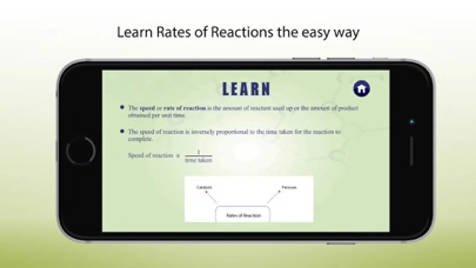 This educational application helps students understand and learn the rate of chemical reaction, rate of reaction formula, chemical kinetics, factors affecting rate of reaction in an easy and engrossing way.