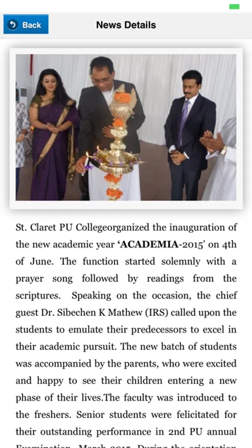 This app requires a username and password to open specific features related to a child. Certain features are open only to parents of registered students. Please contact St. Claret P.U. College office for a username and password if you have not got one. Your phone or tab needs to be connected to the internet to access all features of the app.