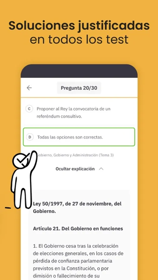 El 100% de nuestras respuestas están justificadas por expertos en cada materia. Sabrás exactamente en lo que fallas. Además, gracias al sistema de reportes, resolverás cualquier duda sobre las preguntas, te la resolverá nuestro equipo de expertos en Contenido.