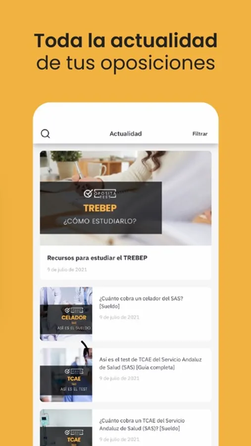 Además, realiza exámenes en modo offline y guarda tus test de oposiciones para repetirlos más tarde.