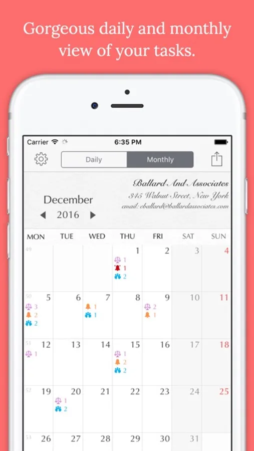 - the daily or monthly view of your tasks;