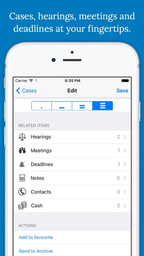 Hearings, meetings and deadlines are automatically synchronized in dedicated sections of your iPad Calendar and Reminders.