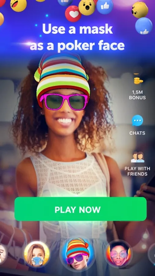 Fancy a game of poker with friends? Look no further. PokerUp is the only poker application that lets you play with you friends from your contacts. Chat before, during and after the game. Share emotions like in real life using our unique instant video feature during the game.