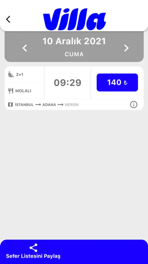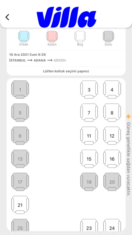 Uygulama üzerinden; mersin villa seyahate ait seferleri görebilir, bilet alım işlemlerinizi yapabilirsiniz.