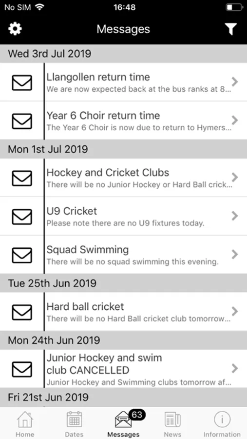 Shows you all the messages for your school or organisation. Also within this section you can assign yourself to personalised message groups, simply click on message groups to activate and deactivate which messages you would like to see.