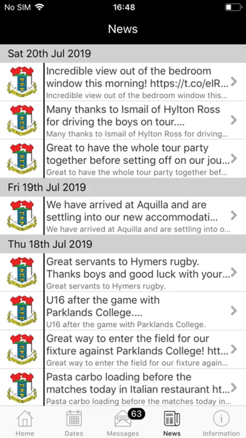 Shows all the latest stories from your school or organisation. If you tap on any news item you will be able to see more detail.
