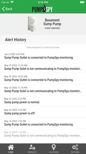 The PumpSpy app alerts you in the event of your sump pump malfunctioning, high water alert, power loss and other important events. You can act to prevent water damage before flooding can occur. View real-time current conditions, pump activity and alert status.