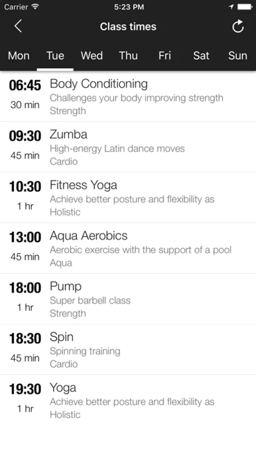 Get real-time access to your centre’s timetable for classes, including times, trainers, rooms and class description.