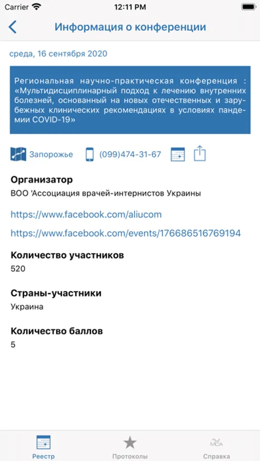 Если вы - организатор мероприятия и хотите разместить информацию о событии (конференции, конгрессе, вебинаре и т.д.) в мобильном приложении, пожалуйста, заполните соответствующую форму на сайте https://mca.net.ua