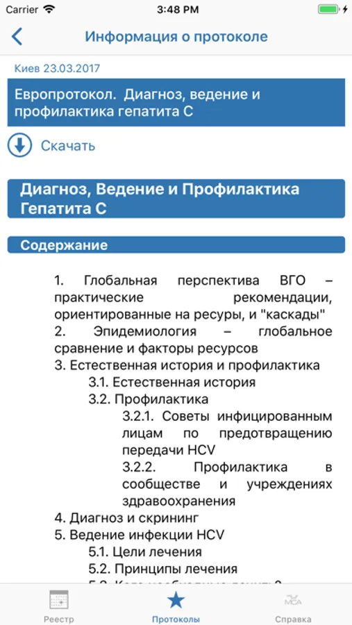 Содержит унифицированные клинические протоколы, утвержденные в Украине, а также протоколы лечения (Guidelines) согласно перечню источников клинических руководств, утвержденных Приказом МЗУ № 1422 от 29.12.2016 г.