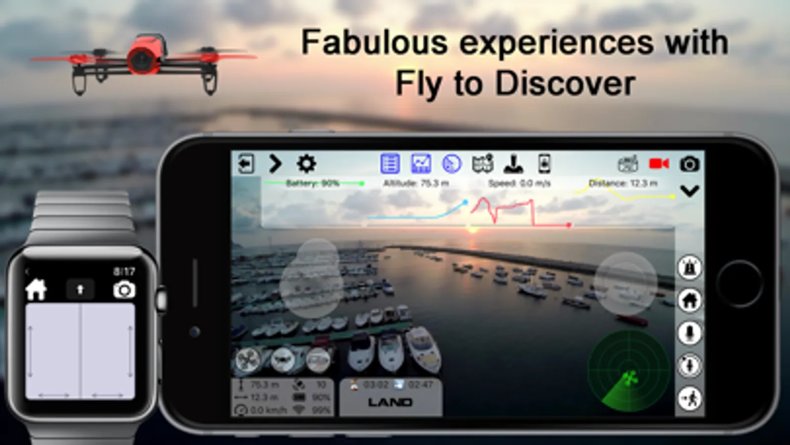 Fly to Discover allow you to control your Parrot® Bebop, Bebop 2, FTD300X and Super300 thanks to fabulous functions such as: