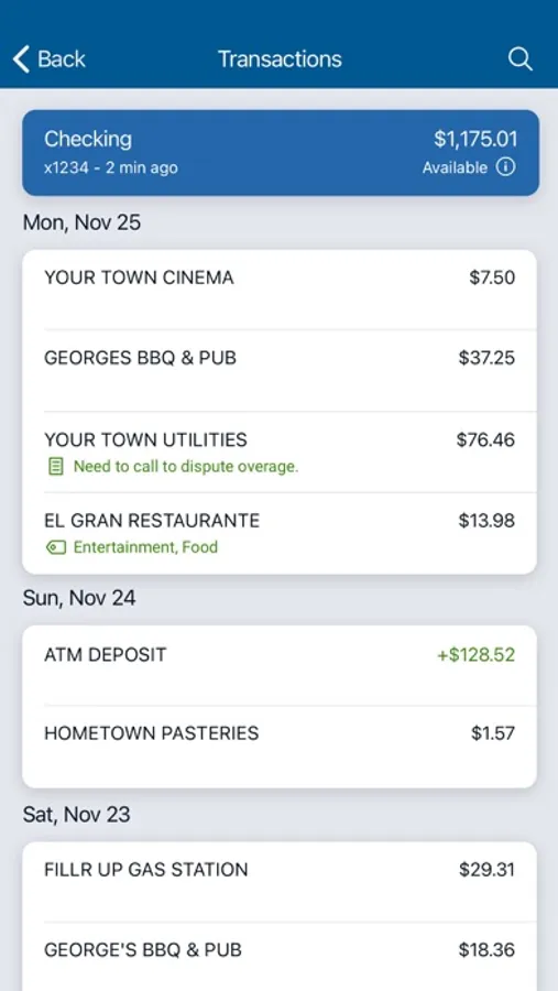 Add Tags, Notes, Images & Geo-Information: By enhancing transactions with custom tags, notes or photos of a receipt or check, you have the ability to stay organized and find exactly what you’re looking for when searching through your finances.