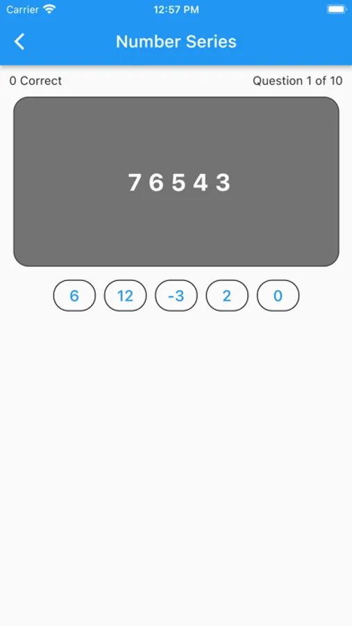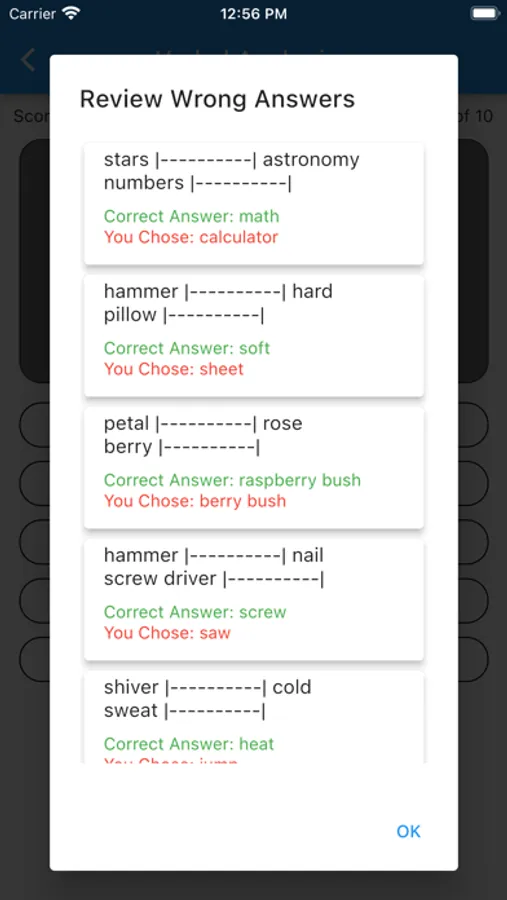 We present a quiz of 10 questions from a bank of questions stored in the app. You get a score and the number right/wrong as well as indication of correct answers then tapped.