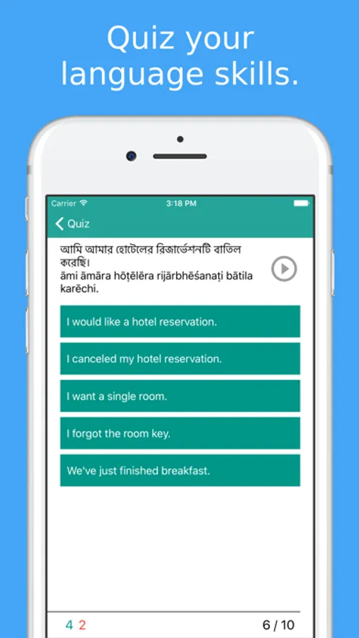 * Adjust the quiz and flashcards settings for Bengali to English, English to Bengali, Phonetics to English, English to Phonetics