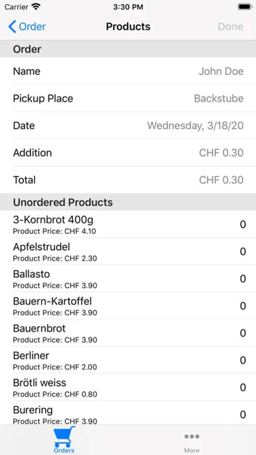 Die App erlaubt es bei einer Bäckerei Backwaren sowie weitere Produkte zu bestellen.