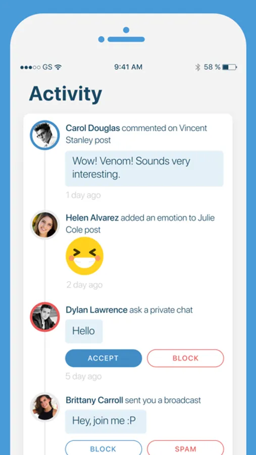 ● Add and follow unlimited number of friends to keep them in touch