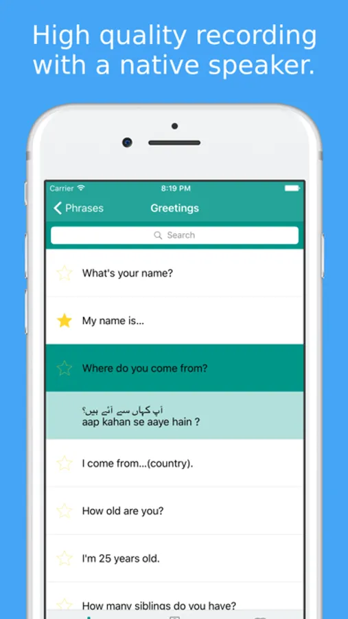 All Urdu phrases and words are presented to you in both phonetic and original Urdu writing. They are recorded by a native speaker from Pakistan.
