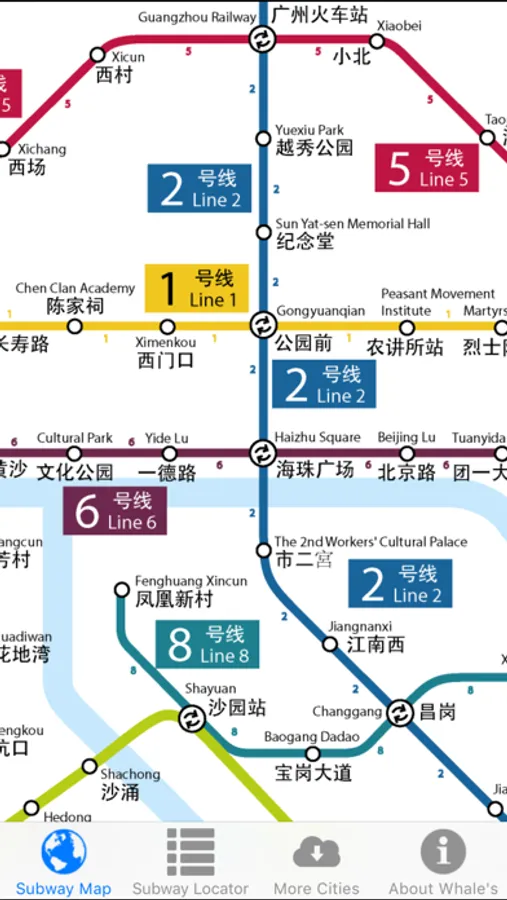 Guangzhou Subway Metro Map works completely offline (no internet connection required!). All subway station names are displayed in both English and Chinese!